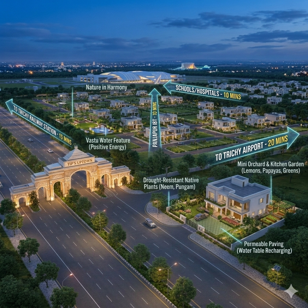 Whether you are looking at Trichy plots for investment or to build your forever home, a well-planned landscape significantly increases property value and enhances your quality of life. Here is how you can transform your space at VIP’s Uptown Trichy into a verdant paradise.